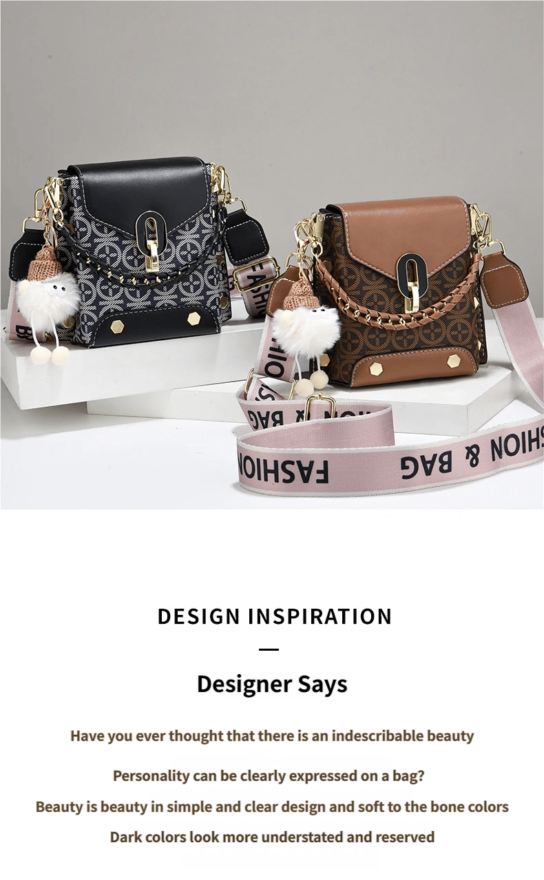 Inspired by a blend of vintage charm and modern sophistication, this bag features a classic monogram pattern paired with elegant solid tones. The designerâs vision was to create a "indescribable beauty" that balances simplicity with a gentle, high-end feel. The contrasting stitching and the unique U-shaped hardware buckle on the front make it a standout piece for any wardrobe.